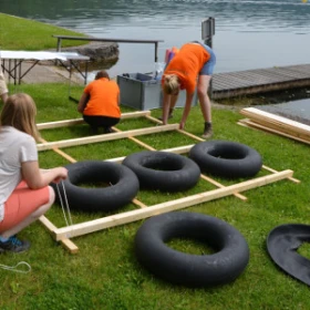 Während Ihres Floßbauens stellen wir Sie vor die Aufgabe, aus verschiedenen Materialien einzelne Teamflöße zu bauen, welche Sie und Ihre Gruppe anschließend sicher über ein Gewässer befördern können.