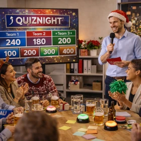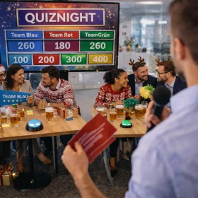 Beweisen Sie bei der Quizshow-Weihnachtsfeier Reaktionsvermögen und begeistern Sie Ihr Kollegenteam beim Lösen verzwickter Wissensfragen mit Pfiffigkeit und Cleverness.