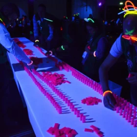 Bei einem Schwarzlicht-Turnier absolvieren Sie gemeinsam mit Ihren Kollegen und Mitarbeitern verschiedene Geschicklichkeits- und Geduldsspiele in einem Raum, in welchem nur fluoreszierende und weiße Materialien leuchten und sonst alles dunkel ist. Fördern Sie in dieser ungewöhnlichen Umgebung die Teamentwicklung Ihrer Gruppe und lassen Sie sich dabei von unserem Trainer unterstützen. Gerne erstellen wir Ihnen zu Ihrem Schwarzlicht-Turnier ein individuelles Angebot und machen dieses für Sie zu einem unvergesslichen und erfolgreichen Highlight.