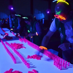 Bei einem Schwarzlicht-Turnier absolvieren Sie gemeinsam mit Ihren Kollegen und Mitarbeitern verschiedene Geschicklichkeits- und Geduldsspiele in einem Raum, in welchem nur fluoreszierende und weiße Materialien leuchten und sonst alles dunkel ist. Fördern Sie in dieser ungewöhnlichen Umgebung die Teamentwicklung Ihrer Gruppe und lassen Sie sich dabei von unserem Trainer unterstützen. Gerne erstellen wir Ihnen zu Ihrem Schwarzlicht-Turnier ein individuelles Angebot und machen dieses für Sie zu einem unvergesslichen und erfolgreichen Highlight.