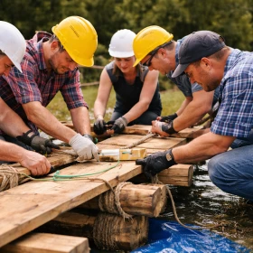 Ein unüberwindbarer Fluss, begrenzte Ressourcen und ein klares Ziel: Als Team eine tragfähige Brücke erschaffen. Beim Teamevent Brückenbau erleben Unternehmen eine intensive Teamchallenge, bei der Kommunikation, Strategie, Kreativität und Zusammenarbeit entscheidend sind. In mehreren Teams entwickeln die Teilnehmenden eine gemeinsame Lösung, um ein Hindernis zu überwinden – unterstützt durch taktische Mini-Challenges, die Vorteile für den Bauprozess bringen. Das Event verbindet handwerkliches Arbeiten mit spielerischem Wettbewerb und schafft nachhaltige Teamerlebnisse, die direkt auf den Arbeitsalltag übertragbar sind.