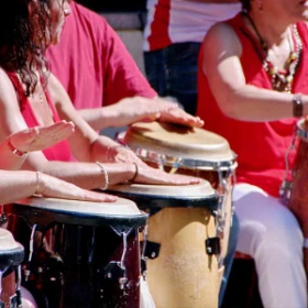 Unter Anleitung erfahrener Trommel-Künstler werden die Teilnehmenden zunächst mit dem Instrument vertraut gemacht. Schritt für Schritt entstehen einzelne Rhythmus-Elemente, die später zu einem gemeinsamen Musikstück verbunden werden.