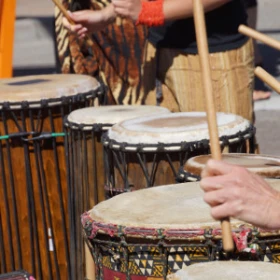 Unter Anleitung erfahrener Trommel-Künstler werden die Teilnehmenden zunächst mit dem Instrument vertraut gemacht. Schritt für Schritt entstehen einzelne Rhythmus-Elemente, die später zu einem gemeinsamen Musikstück verbunden werden.